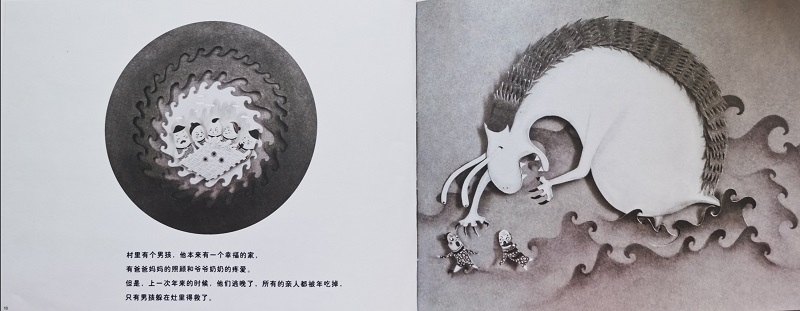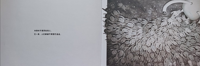 《年》原稿曾在英国公开展览,深受外国人士喜爱,多次要求收藏。《年》有非常有趣有让人刮目相看的创作过程,除了那些小人、房子、水草、鞭炮,连年背上的每根毛都是作者剪出来的,那些不起眼的小雪花也都是剪出来,然后再贴上的。在这本书里,你一定可以看到中国剪纸艺术的伟大。