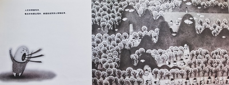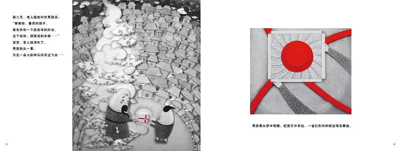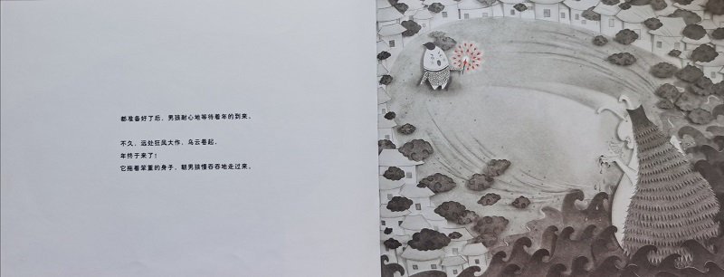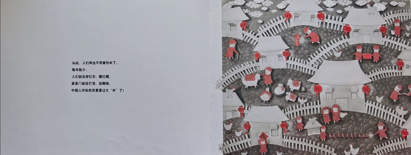 《年》是根据中国过年的传统民间故事改编的绘本,讲述了一个勇敢的小男孩用红色的鞭炮、灯笼和披风把怪兽年赶回海底的故事。 很久很久以前,有一个怪兽生活在海底。每到最冷的时候,它就会爬上岸寻找食物。人们非常害怕这个怪兽,只有一个男孩例外,因为他知道一个战胜怪兽的秘密……