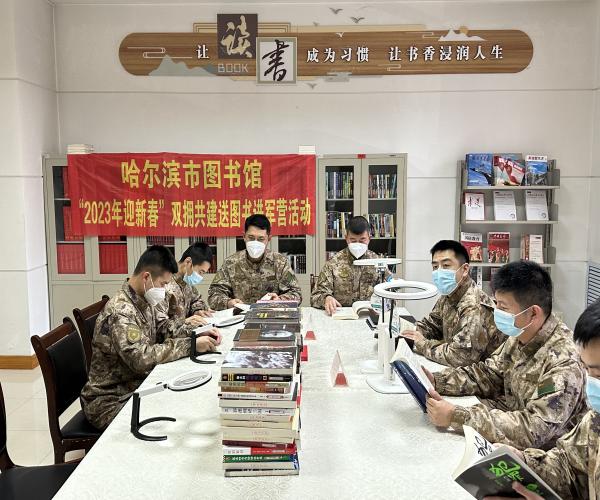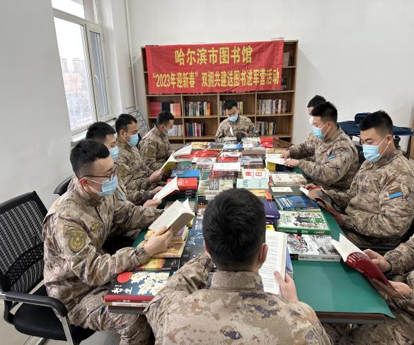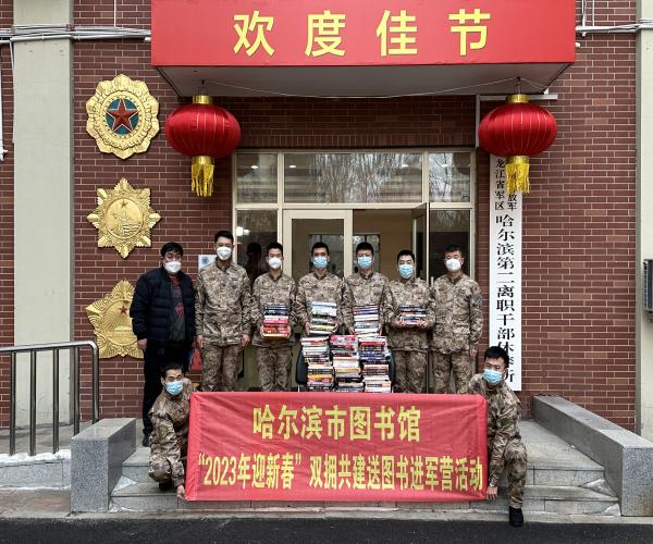 传统节日春节来临之际,在哈尔滨市文化广电和旅游局的领导下,哈尔滨市图书馆汽车馆于1月12日下午14时50分来到了省军区哈尔滨第二干休所、1月13日下午14时55分来到了雷达兵十五旅为老干部和部队官兵们举办了“2023年迎新春”双拥共建送图书进军营活动。
